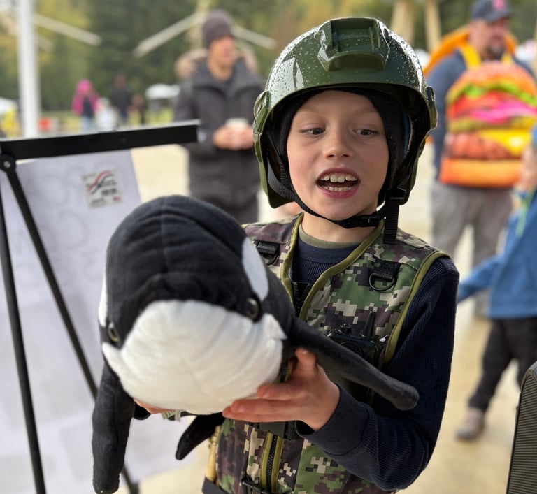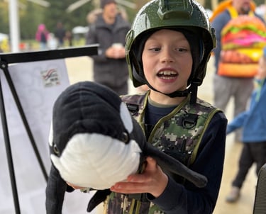 ALL HALLOW'S EVE 2025- Kids do their best orca calls in Gateway Park. The winning caller got a stuffed orca prize. Sadly, no orcas showed up...